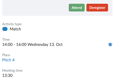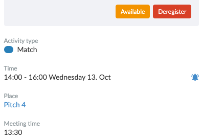 Example: Register for availability or unregister from the activity. The blue colour indicates match.
