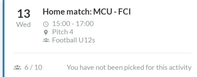 Example: Register or unregister for the activity. The blue colour indicates match. 6 are registered, 10 is max number