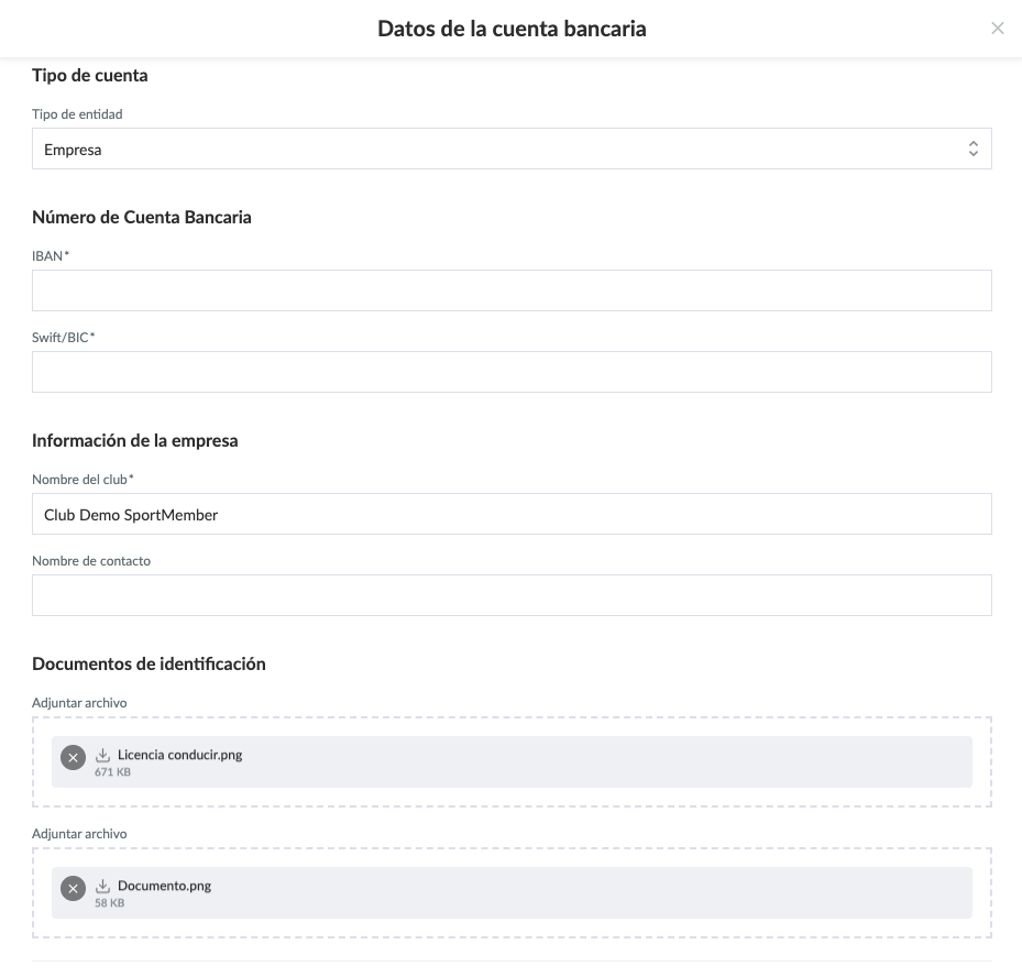 NOTA: Si deseas cambiar la cuenta del club, contáctanos por correo a info@sportmember.es para que nuestro equipo técnico elimine la cuenta existente, y así puedas ingresar una nueva.