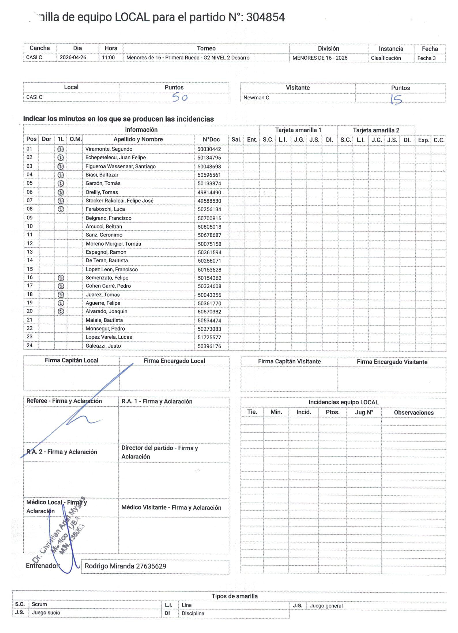 Informes de partidos